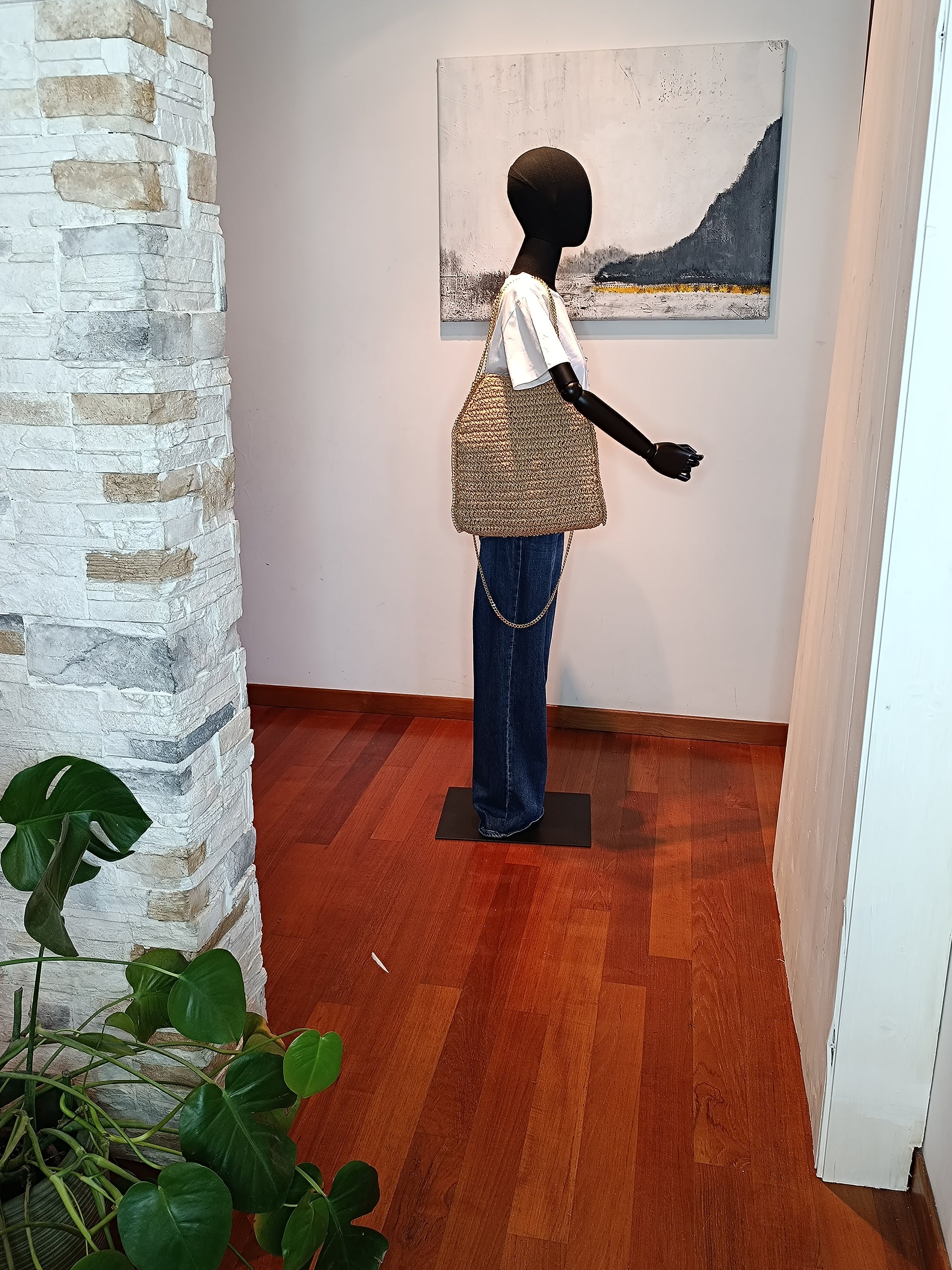Borsa paglia color crema con catena oro* tracolla non removibile*