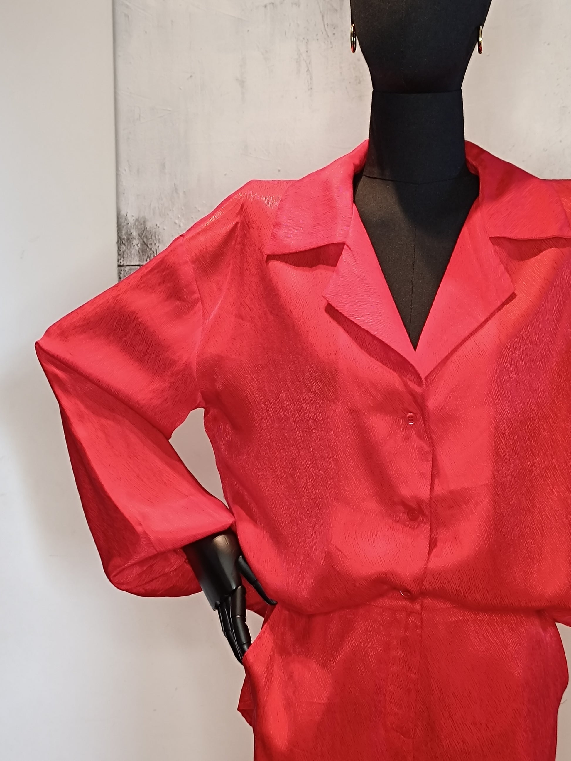 Camicia morbida rossa in satin lavorato*
