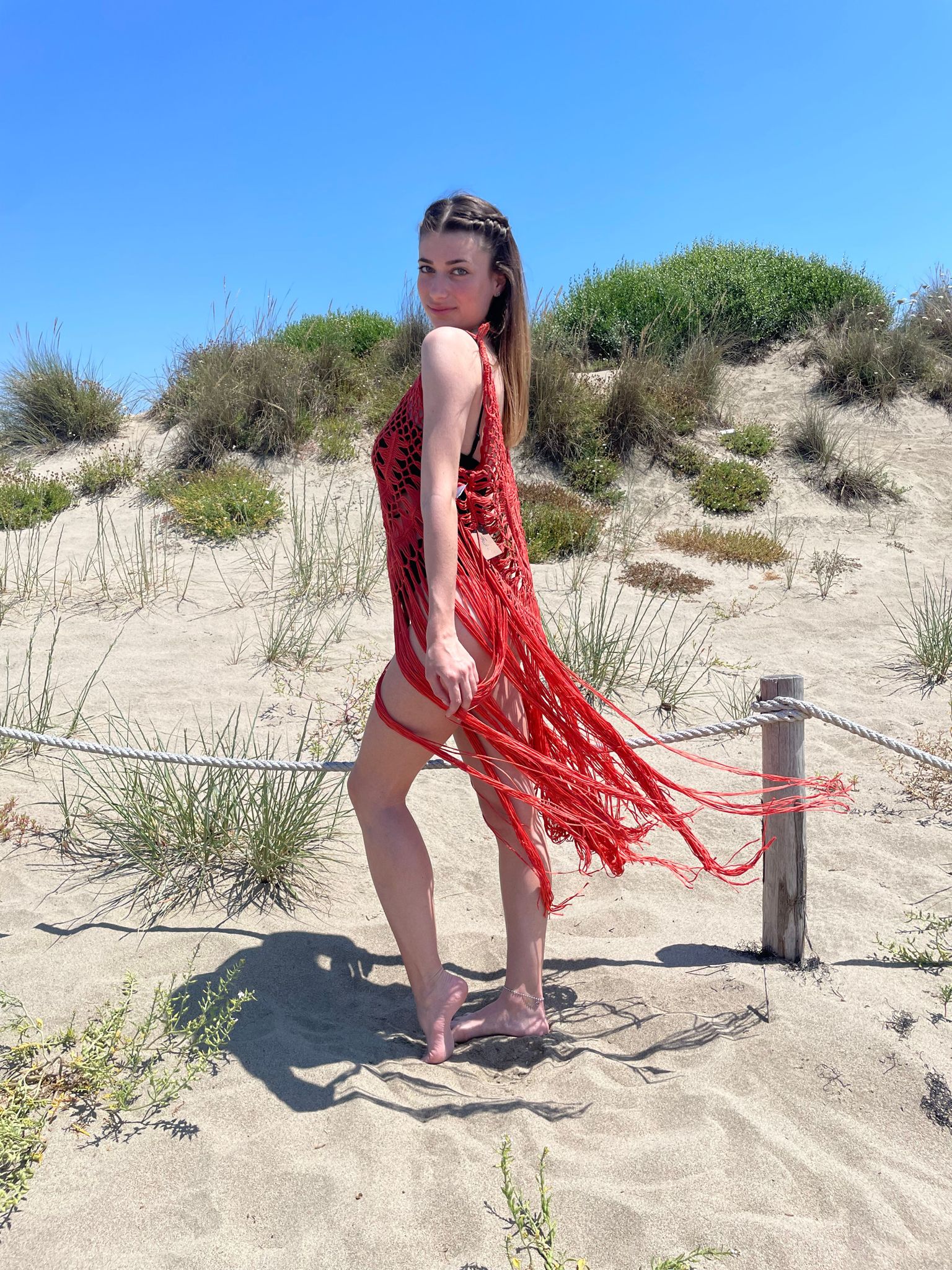Copricostume intero colore terra bruciata e frange molto seducente e femminile.Materiale 50% cotone,50%poliestere.art LR10