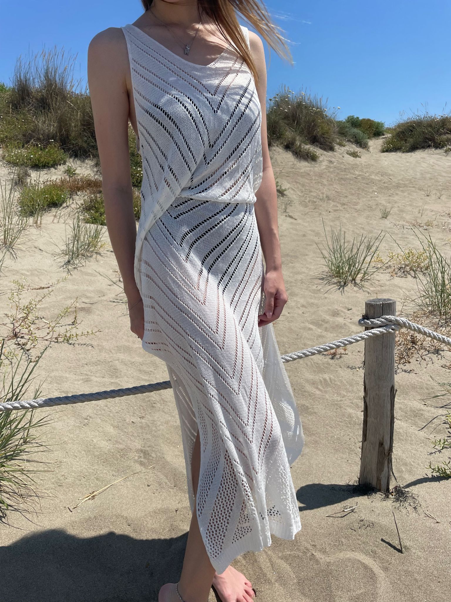 Copricostume intero lungo con tessuto microfirato e spacchi laterali e scollo a V.Materiale poliestere.tg unica .art.VP4231