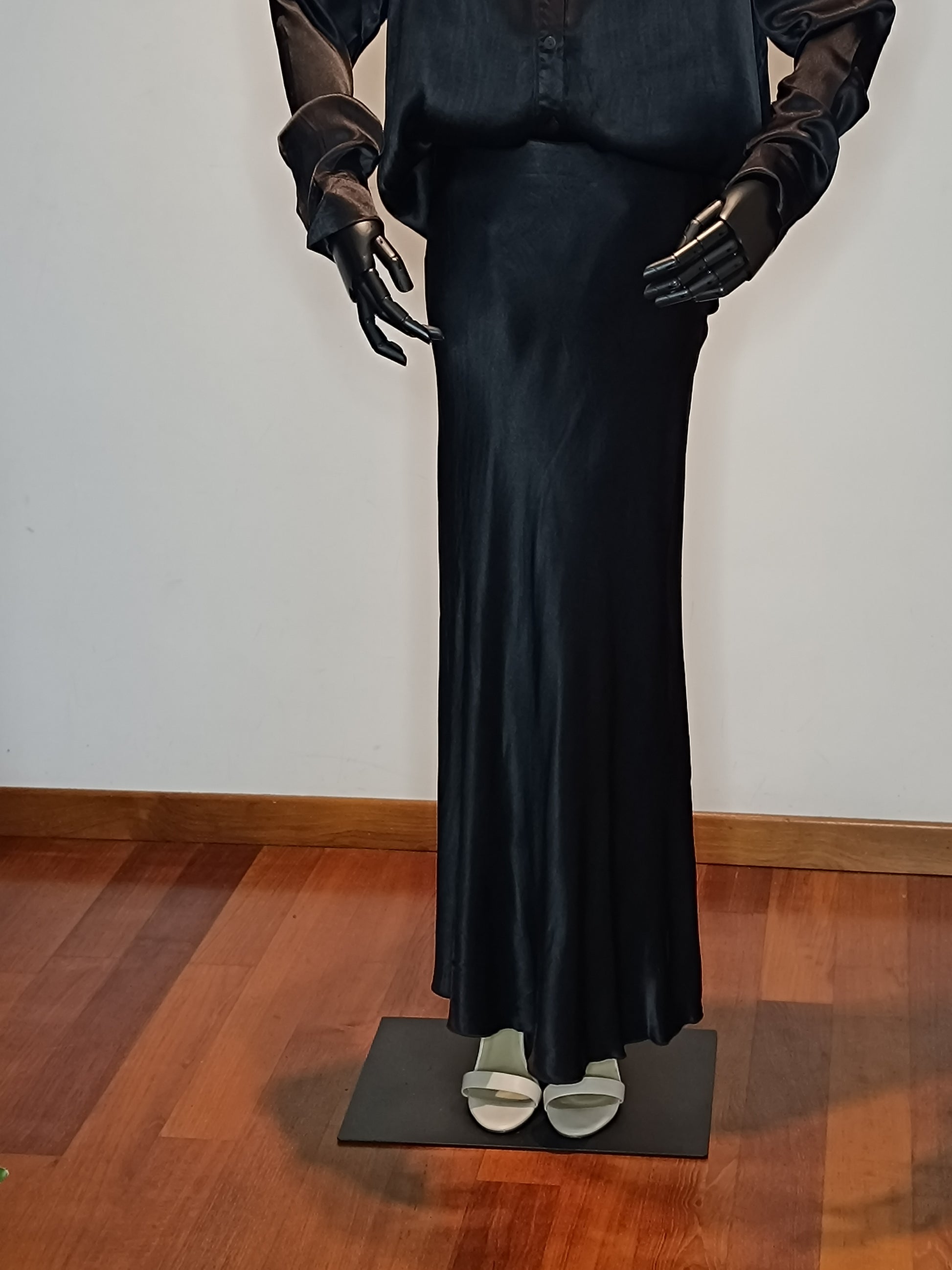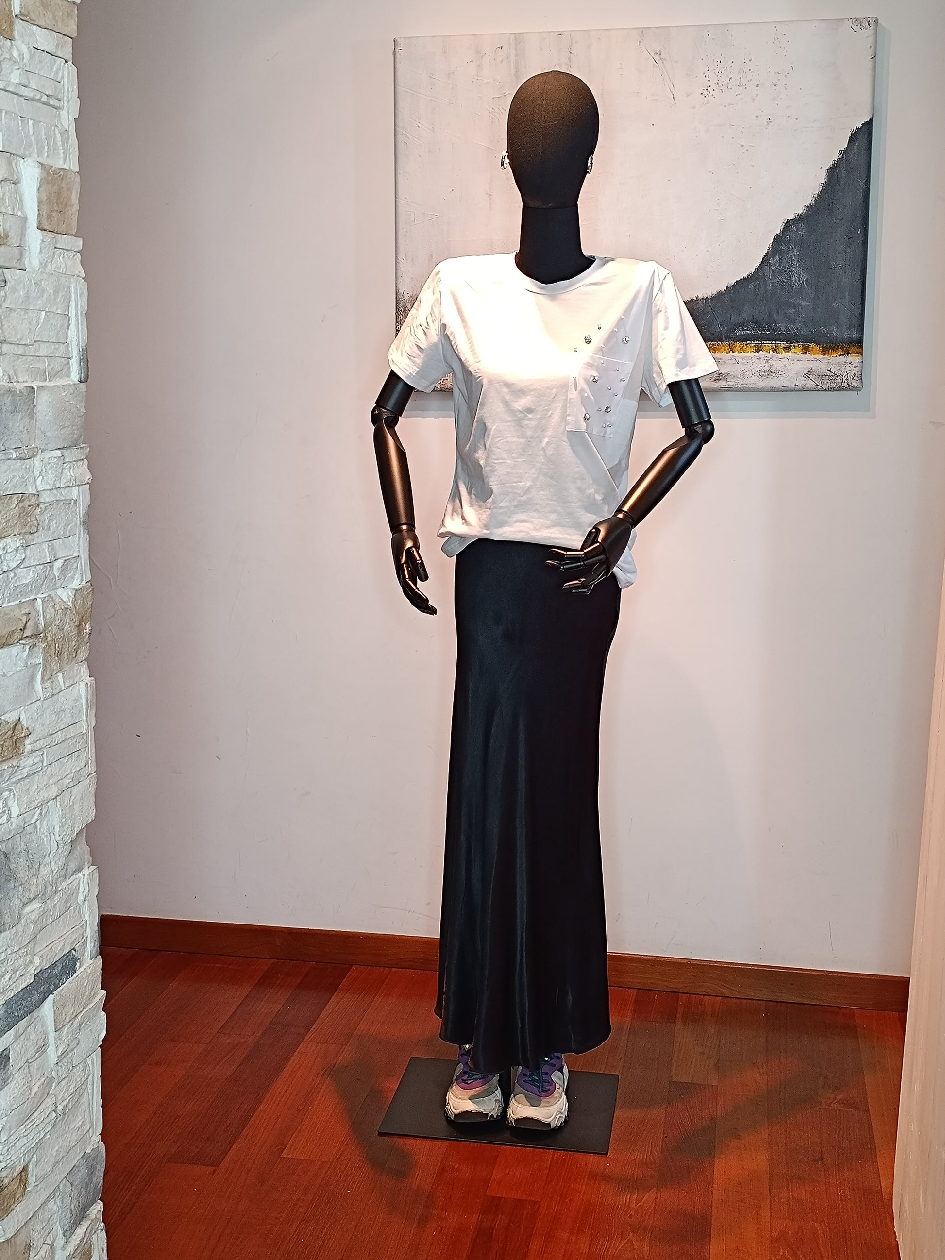 Gonna nera in viscosa* a completare con la camicia* versatile con t-shirt*