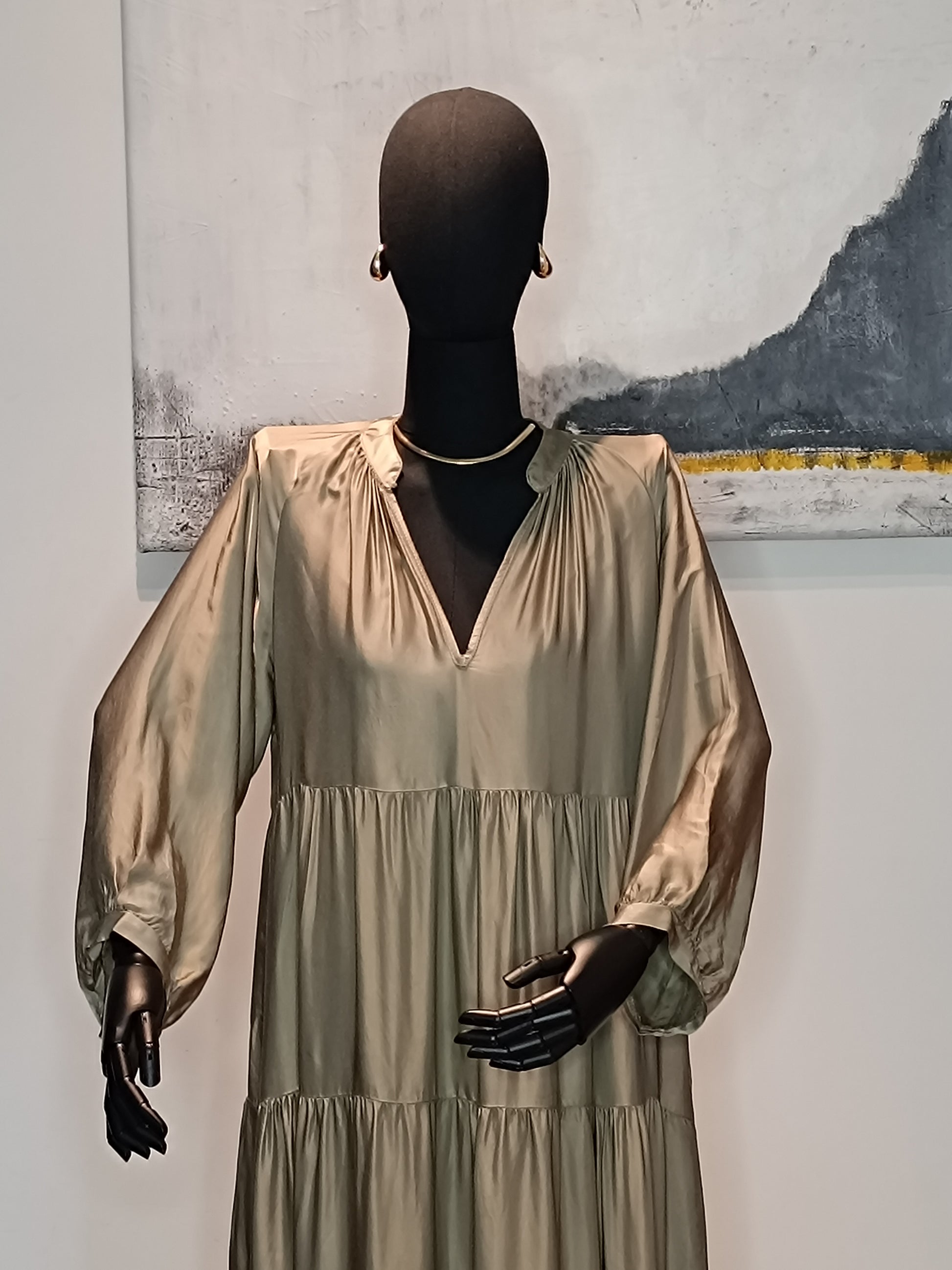 Vestito verde a taglio balze *